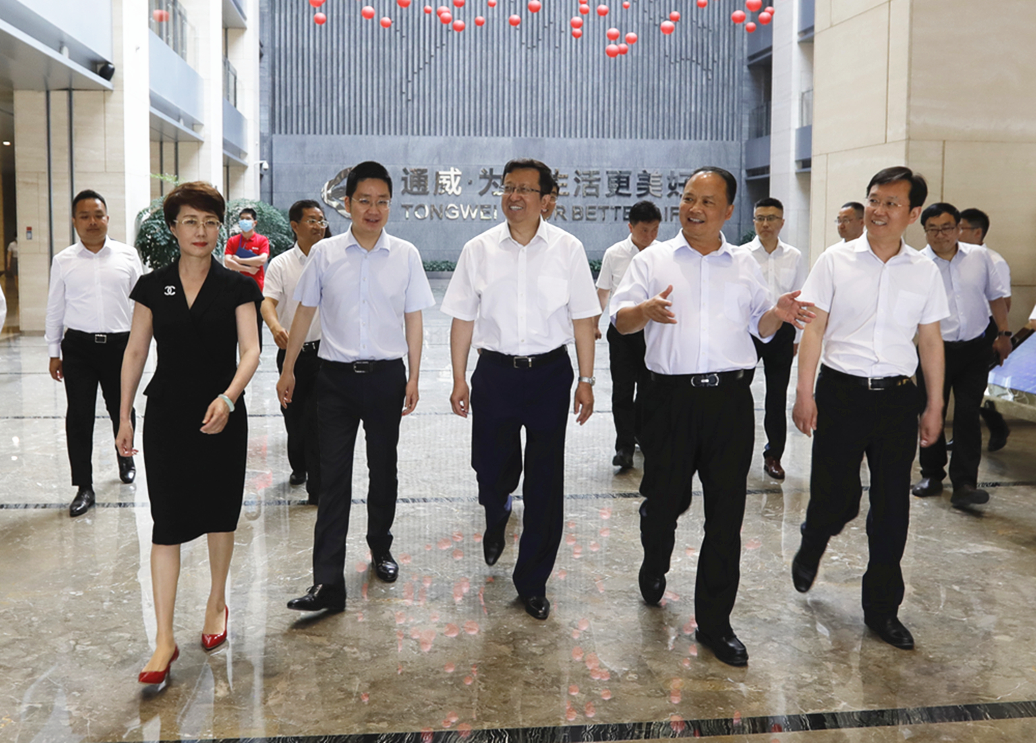 5月6日,眉山市委書記慕新海,市委副書記、市政府市長(zhǎng)胡元坤,市委副書記、天府新區(qū)眉山黨工委書記黃劍東,市政府副市長(zhǎng)唐宏、孫劍一行蒞臨通威考察。十一屆全國(guó)政協(xié)常委、全國(guó)人大代表、通威集團(tuán)董事局劉漢元主席,通威集團(tuán)禚玉嬌總裁,通威股份董事長(zhǎng)謝毅,通威集團(tuán)副總裁管亞偉熱情接待。