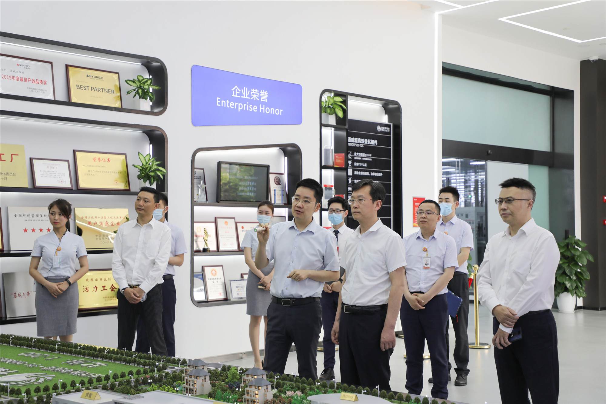 在通威太陽(yáng)能成都公司A1車間,胡元坤市長(zhǎng)一行認(rèn)真聽取了通威太陽(yáng)能發(fā)展歷程、產(chǎn)能規(guī)模、市場(chǎng)占有率等相關(guān)情況介紹,并深入車間,詳細(xì)了解了公司智能制造生產(chǎn)線運(yùn)行情況,對(duì)車間高度自動(dòng)化生產(chǎn)水平和精益化管理給予高度肯定。在通威集團(tuán)體驗(yàn)中心,胡元坤市長(zhǎng)一行詳細(xì)了解了通威38年發(fā)展歷程以及農(nóng)牧和新能源雙主業(yè)發(fā)展成果。