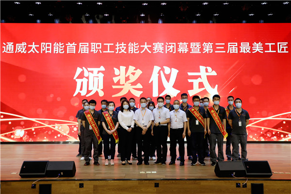 青春由磨礪而出彩,人生因奮斗而升華。5月4日,通威太陽能成都公司舉辦首屆職工技能大賽閉幕式暨第三屆“最美工匠”頒獎儀式,以“最美工匠”為標(biāo)桿示范,以“紅色聚能家”為精神引領(lǐng),推動企業(yè)高質(zhì)量發(fā)展。通威太陽能成都公司總經(jīng)理謝泰宏,通威太陽能副總經(jīng)理楊文棟,通威太陽能成都公司工會女職工委員會主任羅曉云出席,共計140余人參加頒獎儀式。