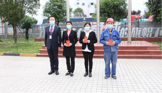 4月20日周一升旗例會上,由四川公司工會主席白麗芬主持技能賽的頒獎環節,華西片區生產總監尚兵、品管總監李敏英,四川通威總經理彭金鋼,分別為獲得此次比賽優勝的24名優秀員工頒獎。