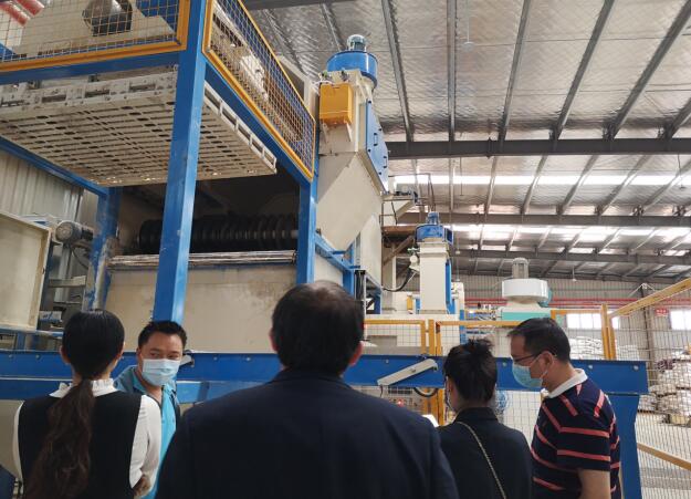 培訓會議結束后,4月14日培訓小組來到蝦特片陽江海壹公司參觀,陽江海壹于2020年1月投產,車間設備設施較新,擁有自動投料機,期間參觀人員認真聽取了自動投料機的優劣勢和運作原理。