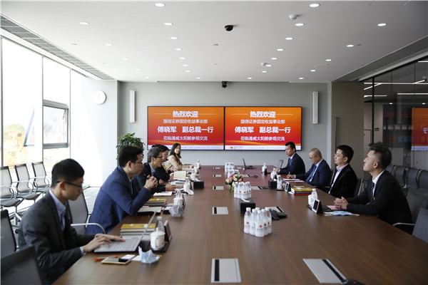 3月31日,國信證券固定收益事業(yè)部副總裁傅曉軍一行蒞臨通威考察交流。通威股份董事長謝毅、副董事長嚴虎、財務(wù)總監(jiān)周斌熱情接待并座談。