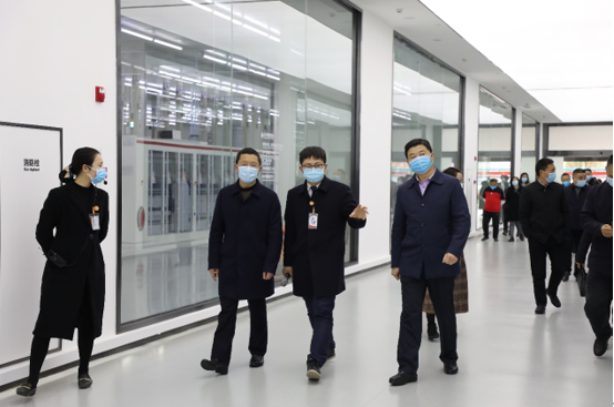 在A1智能制造電池生產車間,李根富副主席全面了解了通威太陽能“智能工廠”、“無人車間”的實時運行情況,逐一詢問了公司防控措施落實、物資儲備、員工返崗率、企業經營現狀、急需解決問題等各方面的情況。