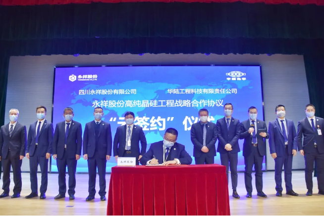 此次簽約采用“云簽約”方式。永祥股份副總經理、永祥新能源總經理李斌,華陸工程科技公司副總經理王凱作為雙方代表進行了高純晶硅工程戰略合作協議簽訂。