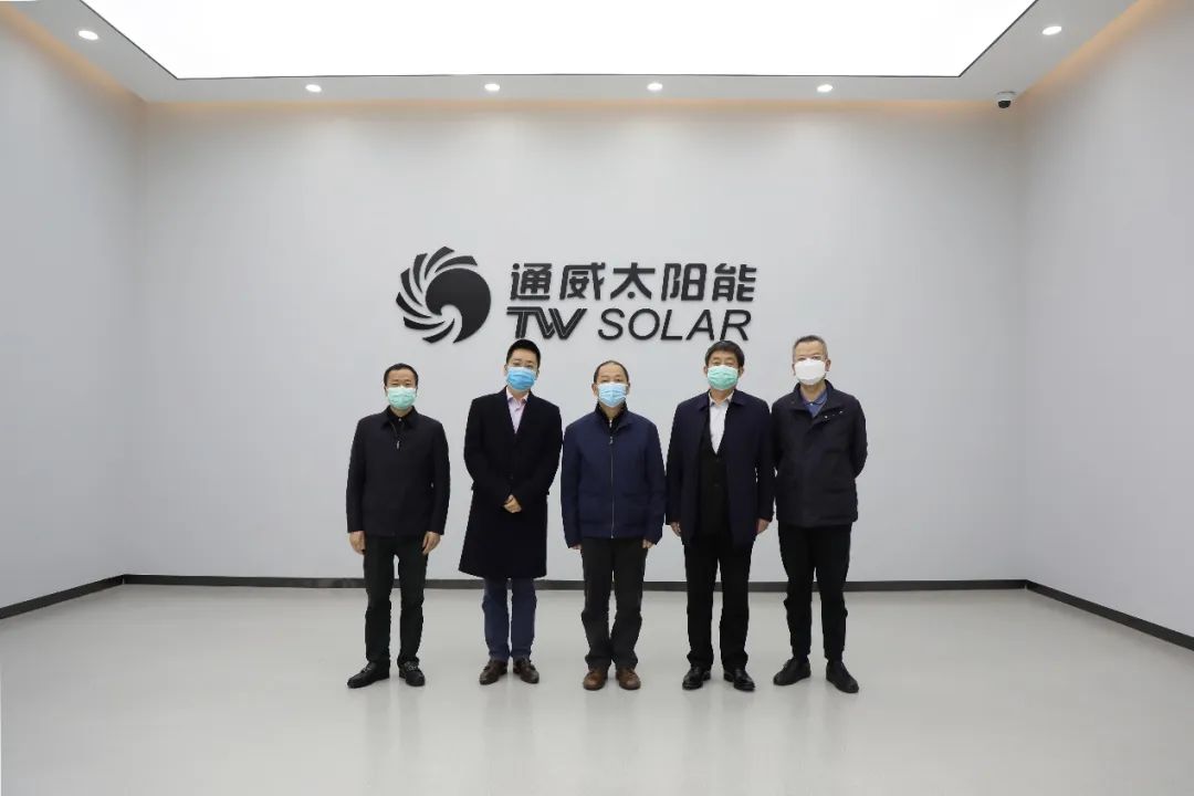 3月6日,四川省商務廳黨組書記、廳長劉欣一行蒞臨通威太陽能成都公司調研,四川省商務廳對外貿易運行處處長張繼朋,成都市商務局黨組成員、總經濟師周立志,成都市商務局對外貿易管理處處長竇川,雙流區委副書記李楊俊陪同,通威股份董事長謝毅熱情接待并陪同調研。