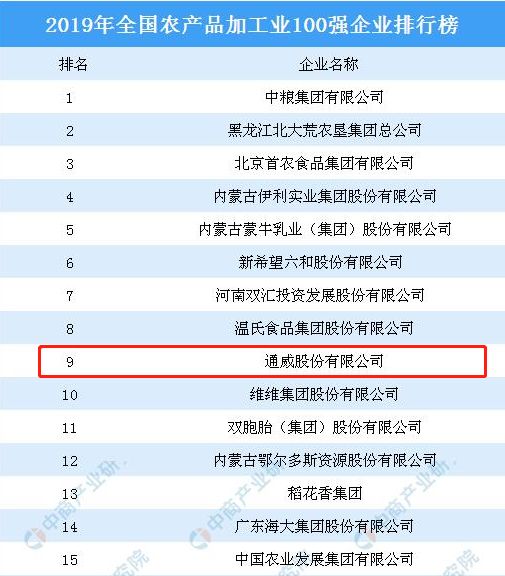 近日,農業農村部發布了2019年全國農產品加工業100強企業名單。通威憑借近年來打造綠色農牧產業鏈所取得的突出成就,榮列榜單前十。一同入圍的還有中糧、北大荒、伊利、蒙牛、溫氏等行業龍頭企業。