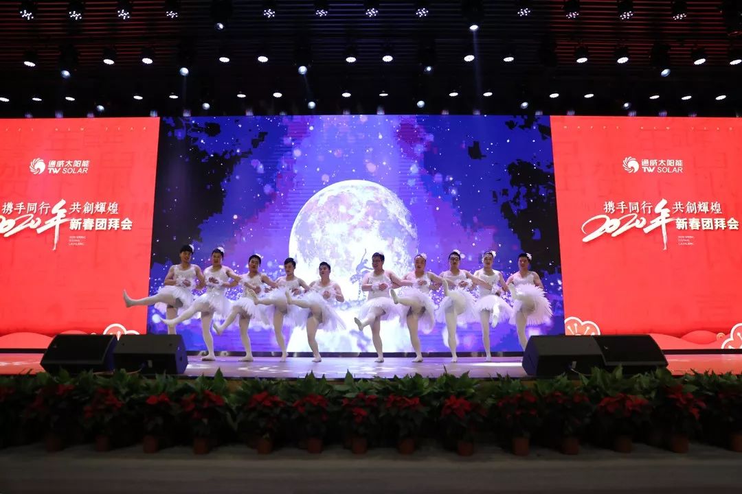 隨后舉行的新春團(tuán)拜會(huì)上,通威太陽能工會(huì)精心編排的12個(gè)形式活潑、內(nèi)容豐富的節(jié)目令人耳目一新,精彩絕倫的表演不時(shí)燃爆現(xiàn)場。由成都基地電池一廠帶來的開場秀舞蹈《毛利戰(zhàn)舞》氣勢(shì)十足,震撼全場;眉山基地以獨(dú)創(chuàng)的沙畫表演拉開帷幕,溫柔動(dòng)聽的歌聲表達(dá)了美好祝愿;成都基地電池一廠和合肥基地采購部同事以歌曲《成都》為原型重新編排的吉他彈唱,滿是通威味道;由成都基地電池六廠自編自排的小品《如果我的工資是電池片》引得全場笑聲不斷;古箏表演和太極拳的組合更是吸睛不斷,由副總經(jīng)理張忠文領(lǐng)隊(duì)帶來的《太極拳》弘揚(yáng)了中華傳統(tǒng)文化。