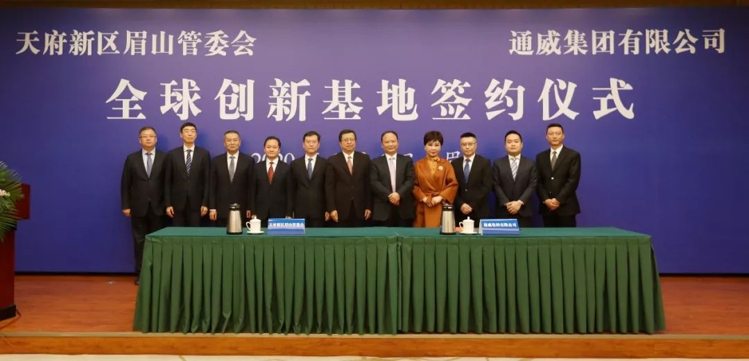 1月6日,通威集團全球創新基地項目簽約儀式舉行,標志著通威集團全球創新基地正式落戶眉山天府新區。眉山市委書記慕新海、通威集團董事局劉漢元主席出席儀式并致辭。眉山市委副書記胡元坤主持簽約儀式。通威集團董事長管亞梅,四川天府新區管委會辦公室副主任、天府新區眉山管委會主任梁磊分別代表通威集團、眉山天府新區簽約。眉山市人大常委會主任劉十慶,市政協黨組書記吳小可,市委副書記、天府新區眉山黨工委書記黃劍東,市委常委、市政府常務副市長祝云,市委常委、宣傳部長何迎曉,市委常委、組織部長黃傳龍,市政府副市長唐宏、冉登祥,通威集團副總裁管亞偉出席簽約儀式。