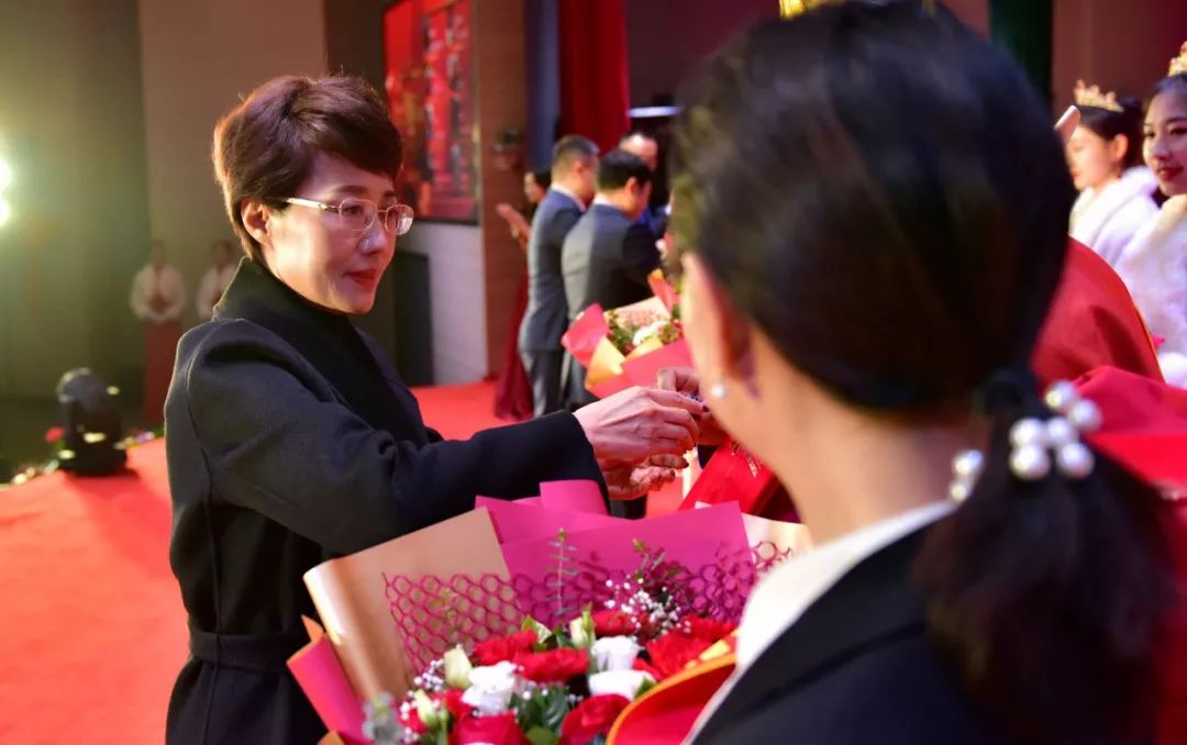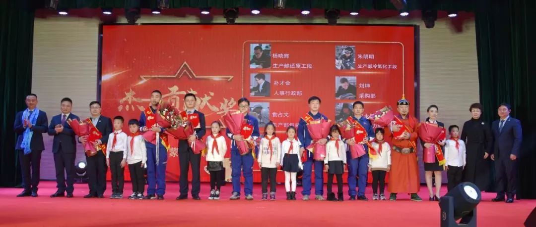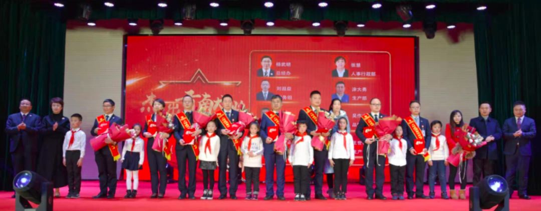 在迎新晚會上,公司對32名來自永祥新能源和內蒙古通威高純晶硅工程建設暨達產達標杰出貢獻者代表進行了隆重表彰,杰出貢獻者們及家屬代表共同登臺領獎,“永祥二代”獻上鮮花行隊禮,表達了崇高敬意。晚會上還特別對即將退休,歷任永祥樹脂品管部經理、永祥多晶硅品管部經理、內蒙古通威高純晶硅品管部部長、永祥股份工會委員會主席、永祥股份黨委委員宋楊,授予總經理特別獎,以感謝她作出的突出貢獻。