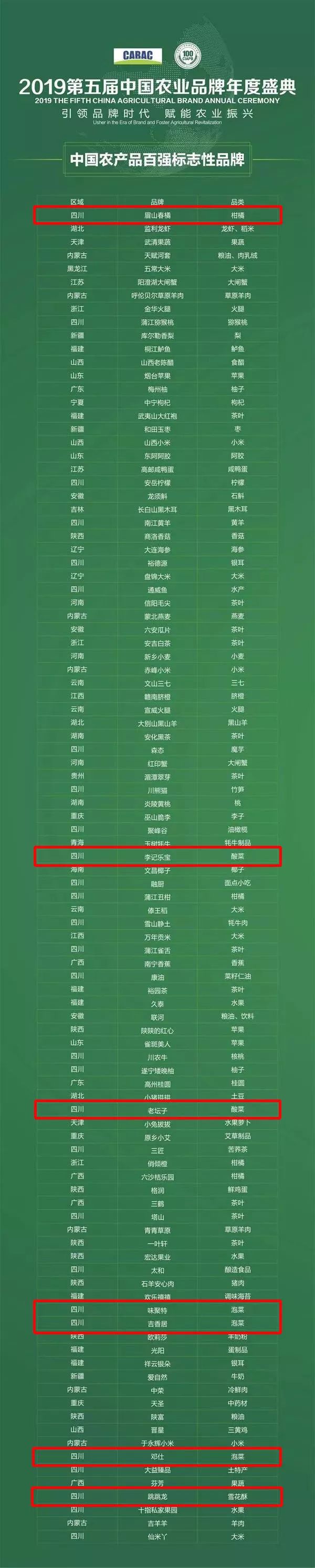 智慧眉山:中國農產品百強標志性品牌揭曉!眉山上榜7個!