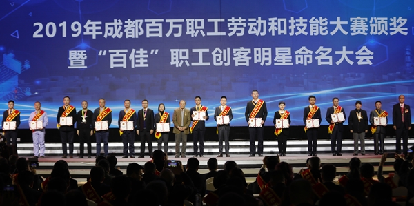 12月13日,“2019成都·職業(yè)技能邀請(qǐng)賽”閉幕式暨勞動(dòng)和技能競(jìng)賽頒獎(jiǎng)大會(huì)在中國(guó)西部國(guó)際博覽城隆重舉行,大會(huì)為2019成都·職業(yè)技能邀請(qǐng)賽、2019成都百萬(wàn)職工勞動(dòng)和技能大賽、五一勞動(dòng)獎(jiǎng)?wù)隆⑽逡粍趧?dòng)獎(jiǎng)狀、工人先鋒號(hào)、第二屆百佳職工創(chuàng)客明星獲獎(jiǎng)?wù)哳C獎(jiǎng)。成都市委常委、統(tǒng)戰(zhàn)部部長(zhǎng)、市總工會(huì)主席吳凱出席,通威股份董事長(zhǎng)謝毅榮獲成都市“五一勞動(dòng)獎(jiǎng)?wù)隆辈⒋沓啥际兴形逡粍趧?dòng)獎(jiǎng)?wù)隆⑽逡粍趧?dòng)獎(jiǎng)狀和工人先鋒號(hào)獲得者發(fā)言。