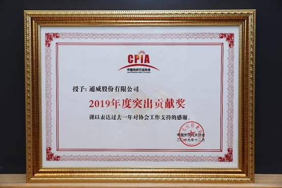 通威股份榮獲“2019年度突出貢獻(xiàn)獎(jiǎng)”