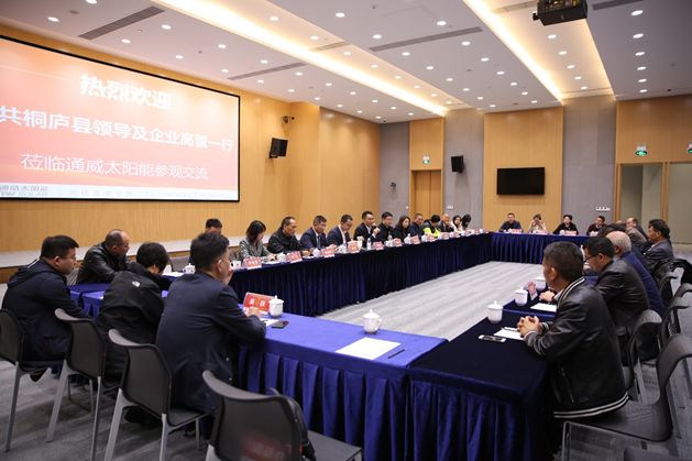 11月26日,浙江省桐廬縣人大常委會主任游宏,縣政協副主席潘立銘、副縣長翁嫣等領導攜桐廬縣優秀企業代表蒞臨通威太陽能成都公司考察交流,通威太陽能成都公司總經理謝泰宏熱情接待。