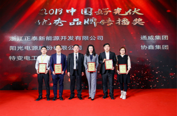 此次論壇為表彰在光伏行業(yè)里作出突出貢獻(xiàn)的企業(yè),設(shè)置了多個(gè)獎(jiǎng)項(xiàng),鑒于通威集團(tuán)在我國(guó)光伏發(fā)展過程中起到的龍頭企業(yè)作用,組委會(huì)特此頒發(fā)2019“中國(guó)好光伏”企業(yè)領(lǐng)袖獎(jiǎng)及2019“中國(guó)好光伏”優(yōu)秀品牌傳播獎(jiǎng)。同時(shí),通威太陽(yáng)能榮獲2019“中國(guó)好光伏”民族品牌獎(jiǎng),永祥股份榮獲2019“中國(guó)好光伏”材料技術(shù)創(chuàng)新卓越獎(jiǎng)。
