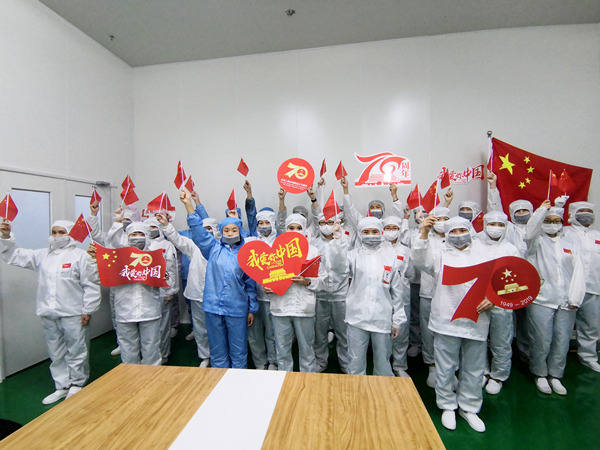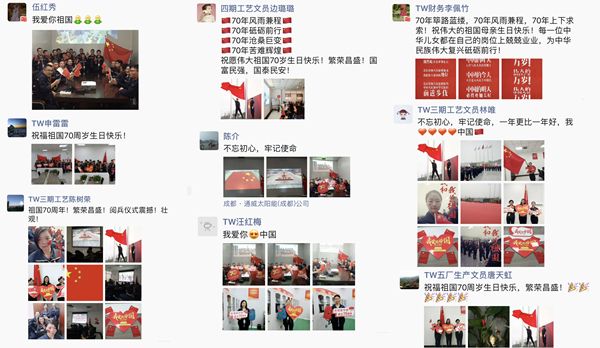 為慶祝中華人民共和國成立70周年,10月1日,通威太陽能合肥、成都兩地組織開展了內(nèi)容豐富、形式多樣的系列文化活動,積極營造節(jié)日氛圍,廣泛凝聚奮斗力量,激發(fā)全體職工愛國熱情,向新中國成立70周年獻(xiàn)禮。