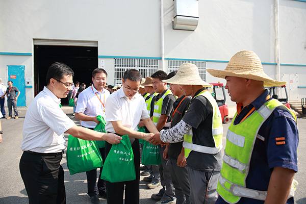 慰問活動中,宋道軍主任與每一位戶外工作員工親切交談并握手,親自將慰問品送到他們手中,了解戶外工作員工的身體情況和工作情況,并致以深深的敬意,感謝他們為公司付出的辛勤汗水,為社會帶來的奮斗精神。“高溫天氣工作確實挺辛苦的,但有領導們的關懷和慰問,再難再艱辛我們也一定能克服”,計劃部一位叉車作業員感激地說道。
