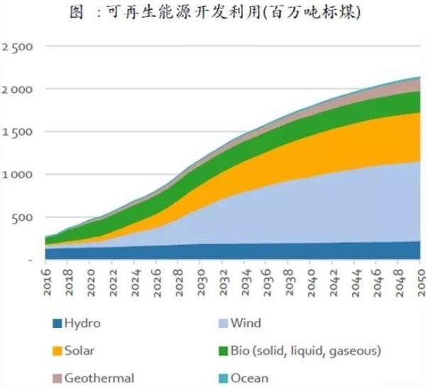 然而,根據(jù)國(guó)家可再生能源中心去年發(fā)布的《中國(guó)可再生能源展望 2018》的報(bào)告顯示,2020年中國(guó)化石能源消費(fèi)總量將達(dá)到頂峰,2035年之前將穩(wěn)步下降,煤炭在發(fā)電和工業(yè)部門(mén)的能源消費(fèi)比例會(huì)持續(xù)縮減。下個(gè)十年中國(guó)將迎來(lái)光伏與風(fēng)電大規(guī)模建設(shè)高峰。新增光伏裝機(jī)量約80-160 GW/年,新增風(fēng)電裝機(jī)量約70-140 GW/年。