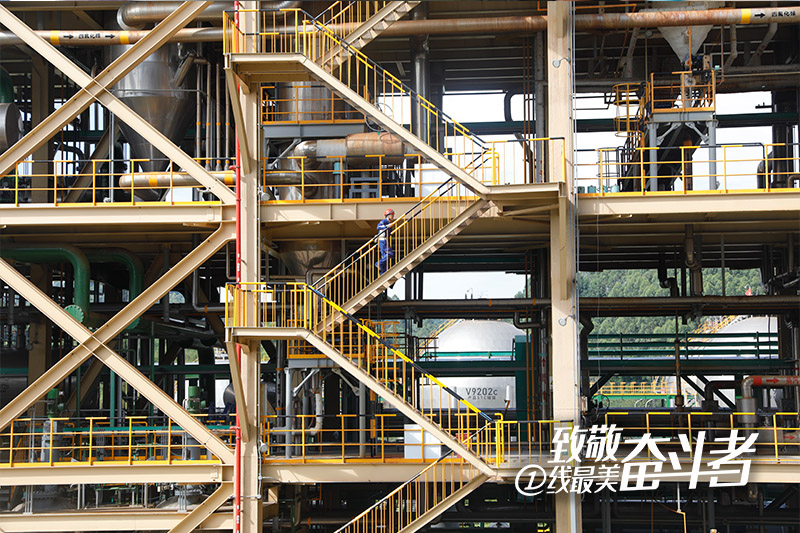 裝置區鋼架樓梯,真的很難爬,幅度高、梯級間隔大。我頂著烈日,手扶欄桿,跟著爬了三層,已經有些氣喘吁吁。當陶勛貴告訴我,如果有裝置出現問題,他們背著三十斤應急處置裝備也必須在2分鐘從1層跑到5層時,我有些驚訝:“可能嗎?”但對于陶勛貴和他的同事而言,不是可不可能,而是必須做到。2分鐘到不了,錯過了5分鐘黃金救援時間,問題就可能變成事故,影響的是整個公司生產經營。“哪有什么歲月靜好,只不過是有人替你負重前行。”當我們感嘆這座全球領先的現代化工廠,綠色安靜,如同花園一般,不應該忘記背后“戰戰兢兢如履薄冰,守護裝置二十四小時穩定的所有永祥人,是他們用汗水、用責任、用認真撐起了我們的光伏夢。