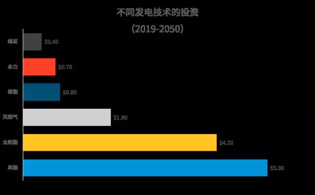 風(fēng)能與太陽能的投資將分別達(dá)到5.3萬億美元和4.2萬億美元