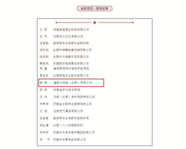 “合肥市五一勞動(dòng)獎(jiǎng)?wù)隆辈糠肢@獎(jiǎng)名單
