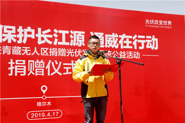 為推動長江源生態環境保護,繼“青藏綠色驛站”離網光伏發電系統公益捐贈,開創世界屋脊光伏電站捐贈先河后,通威集團再度挺進青藏無人區,為“長江源班德湖野生動物觀測站”捐贈十余套離網光伏發電系統,為高海拔地區的野生動物觀測站提供清潔的光伏電力。4月17日,“點亮無人區,保護長江源,通威在行動——通威集團再度挺進青藏無人區捐贈光伏發電系統”捐贈儀式在長江源水生態保護站成功舉行。綠色江河環保促進會會長楊欣、通威集團品牌管理中心主任助理康煜等嘉賓出席儀式,來自通威集團、綠色江河環保促進會的志愿者們共同見證了這一歷史時刻。