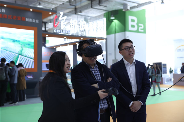 參展觀眾借助VR體驗(yàn)通威“漁光一體”