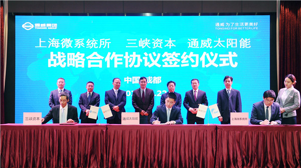 通威太陽能、上海微系統所、三峽資本正式簽訂SHJ太陽能電池產業化戰略合作協議