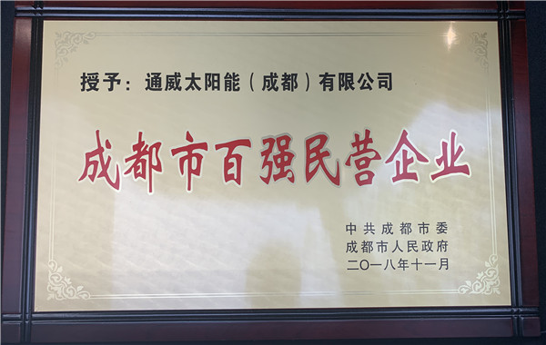 通威太陽能榮獲成都市百強民營企業殊榮