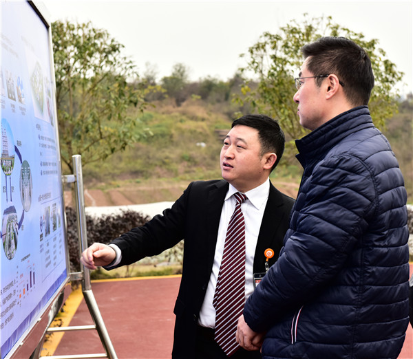 永祥股份董事長兼總經(jīng)理段雍向曾洪揚副書記匯報永祥股份發(fā)展情況
