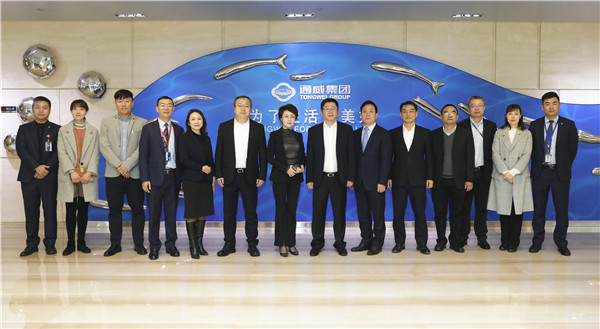葉向峰行長一行首先參觀了通威集團(tuán)體驗(yàn)中心,詳細(xì)了解了通威36年穩(wěn)健快速發(fā)展歷程,對(duì)通威農(nóng)業(yè)、新能源綠色雙主業(yè)發(fā)展成果表示高度贊賞。