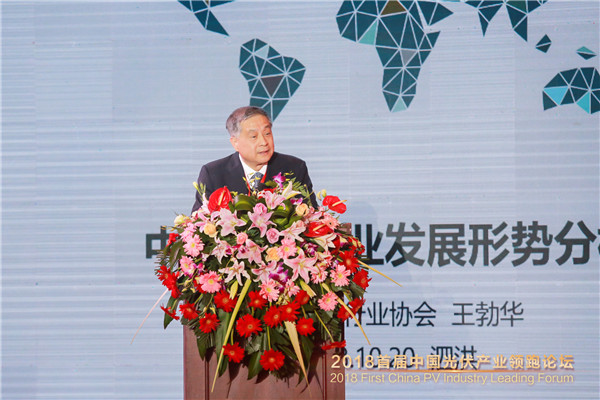 中國光伏行業協會副理事長兼秘書長王勃華以《中國光伏行業現狀與展望》為題作了精彩的主題演講。他深入淺出地分析了2018年1-9月期間,國內光伏產業全產業鏈中多晶硅產量、硅片環節、電池片環節等的發展情況及光伏產品出口歐美的情況。他表示,光伏產業是我國為數不多的、能夠同步參與國際競爭、具有產業化領先優勢的行業,光伏產業發展潛力巨大,全球發展光伏產業是“大勢所趨”。