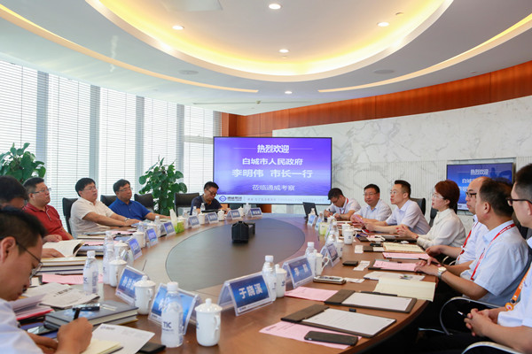 8月19日,吉林省白城市市長李明偉,副市長張天華、張勛奎,白城工業園區黨工委書記、管委會主任梁子軍,經合局局長胡春志,能源辦主任張曉波等一行蒞臨通威參觀考察。集團董事局劉漢元主席,集團禚玉嬌總裁,通威股份光伏事業部總裁陳星宇等熱情接待。