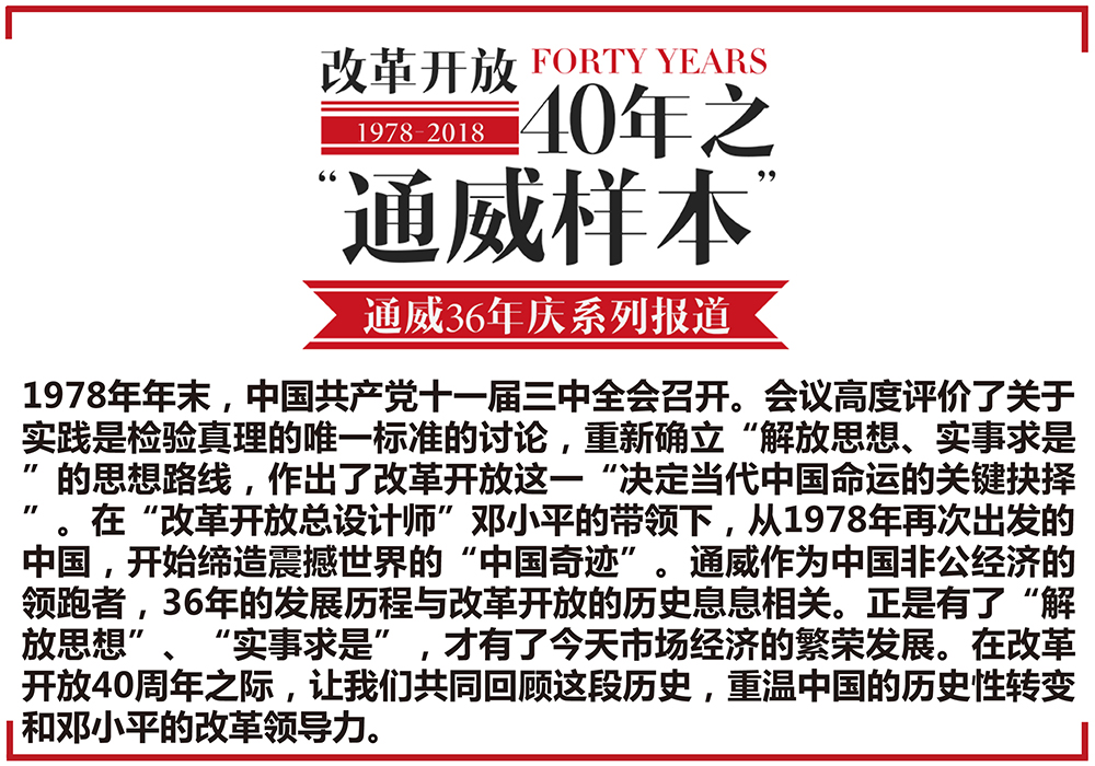通威作為中國(guó)非公經(jīng)濟(jì)的領(lǐng)跑者,36年的發(fā)展歷程與改革開(kāi)放的歷史息息相關(guān)。正是有了“解放思想”、“實(shí)事求是”,才有了今天市場(chǎng)經(jīng)濟(jì)的繁榮發(fā)展。在改革開(kāi)放40周年之際,讓我們共同回顧這段歷史,重溫中國(guó)的歷史性轉(zhuǎn)變和鄧小平的改革領(lǐng)導(dǎo)力。