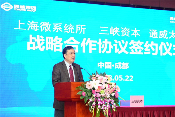 王曦所長在致辭中提到,通威太陽能是我國領先的太陽能電池制造企業,擁有先進的太陽能電池生產制造技術以及現代化的管理水平。上海微系統所也將一如既往地為技術團隊提供服務和保障,利用研發平臺為合資企業提供新技術研發資源。相信在政府的大力支持下,通過三方的共同努力,產生很好的優勢互補,充分發揮各自的優勢,使合資企業成為行業內閃亮的“利劍”。