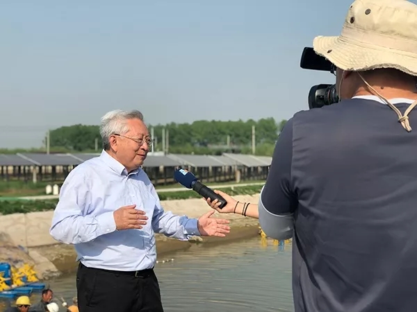4月18日,臺灣東森新聞臺記者走進江蘇揚中通威環太“漁光一體”項目進行綠色農業專題攝制,國務院特殊津貼專家、通威股份首席水產專家吳宗文等領導熱情接待。