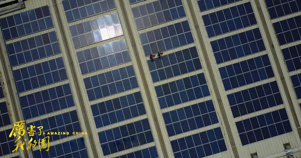 中國橋、中國路、中國車、中國港、中國網(wǎng),《厲害了,我的國》中選取了十八大以來眾多非凡的超級工程,還展示了人類歷史上最大的射電望遠鏡FAST、全球最大的海上鉆井平臺“藍鯨2號”、磁懸浮列車研發(fā)、5G技術等引領人們走向新時代的里程碑式的科研成果。影片用鏡頭繪制了一幅新時代的鴻篇巨制,所展現(xiàn)出的祖國風采和大國風范,給觀眾帶來了視覺與心靈的雙重震撼。其中,影片還尤其關注了中國智造及清潔能源發(fā)展,并將鏡頭對準青海格爾木共和光伏電站,展現(xiàn)了太陽能光伏發(fā)電與荒漠化治理成果,綠色新能源點亮青藏高原,成為全國乃至世界光伏產業(yè)界矚目的焦點。
