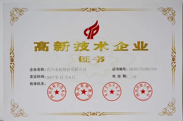 四川永祥股份有限公司根據國家《高新技術企業認定管理辦法》和《高新技術企業認定管理工作指引》,于2017年3月啟動國家高新技術企業認定申請,從技術、財務、政策三方面收集匯總資料,最終憑借高比例的研發投入、優秀的產品創新能力、卓越的成果轉換能力、健全的規章管理制度等綜合實力獲得2017年國家高新技術企業的認定,充分體現其技術研發能力、科技創新水平已走在國內同行前列,處于領先地位。