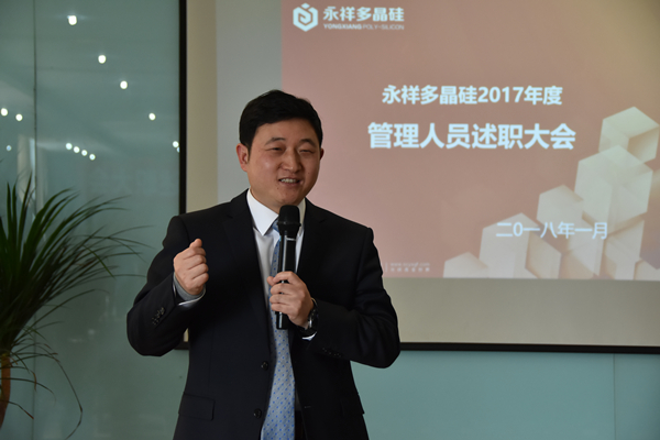 會上,永祥多晶硅各部門中層管理干部通過舉實例、列數(shù)據(jù)、圖文并茂的PPT展示,分析了各自在2017年的主要工作開展及完成情況,客觀深入地剖析了自己存在的問題,制定了改進措施并對2018年工作計劃進行闡述。公司領導對中層管理干部進行現(xiàn)場打分,對每一位述職干部給予“公平、公正、公允”的評價。