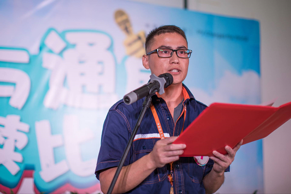 兩地比賽現(xiàn)場(chǎng),102位來(lái)自公司各崗位的朗讀者們或鏗鏘激昂、或滿懷深情,將無(wú)聲的文字用真摯的情感訴說(shuō)。《通威集團(tuán)企業(yè)文化故事集》中的感人故事、《那些年,我們?cè)谝黄鸬娜兆印分械木饰恼露紓涫苓x手們的青睞,獨(dú)具風(fēng)格的原創(chuàng)作品也在現(xiàn)場(chǎng)贏得陣陣掌聲。來(lái)自合肥公司信息管理部的李琳,用深情的話語(yǔ)將同事的原創(chuàng)作品《秋日下的通威》娓娓道來(lái);而成都公司行政部黃其淋等6人朗讀的《我是意氣風(fēng)發(fā)的通威人》更是情感真摯、詩(shī)情飛揚(yáng)。