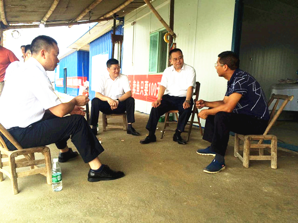 郭異忠總裁一行與當地水產局工作人員交流