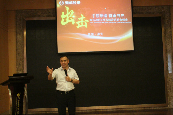 6月30日——7月1日,通威股份華東戰(zhàn)區(qū)6月市場營銷聯(lián)合會(huì)議(淮安場)在淮安通威隆重召開。通威股份副總裁兼華東戰(zhàn)區(qū)總裁王尚文、通威股份華東戰(zhàn)區(qū)總裁助理萬學(xué)剛、華東戰(zhàn)區(qū)市場服務(wù)總監(jiān)趙玉東、連云港通威總經(jīng)理冉龍?zhí)铩椙f通威總經(jīng)理趙正英、淮安通威總經(jīng)理丁永國出席會(huì)議。連云港通威、棗莊通威、淮安通威市場部經(jīng)理全程參會(huì)。本次會(huì)議內(nèi)容主要圍繞連云港、棗莊、淮安公司2017年上半年?duì)I銷管理工作進(jìn)行交流總結(jié)。