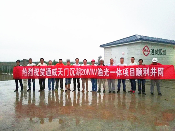 員工齊賀通威天門沉湖一期20MW光伏發(fā)電項目成功并網(wǎng)