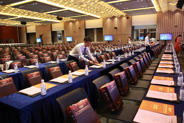 與此同時,通威國際中心5樓會場緊張有序地忙碌著,各小組為即將啟幕的行業盛會做最后的檢查,再度一一確認現場所有環節,以確保明日大會的順利舉行。