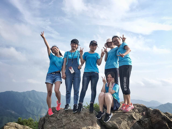 通威文化造就通威人,通威精神鑄就通威魂。一場簡單的登山礪煉行動(dòng),過程中涌現(xiàn)出了許多讓人感動(dòng)的地方。因?yàn)檎翟鲁酰笄趫F(tuán)隊(duì)只有六位女同事參加。活動(dòng)開始前,大家都以為女士在登山中會(huì)比較弱勢,但是她們通過自己的努力,全部登上山頂,讓團(tuán)隊(duì)大吃一驚。水產(chǎn)一部一位業(yè)務(wù)員,因?yàn)樘栠^于熾熱,再加上登山帶來的顛簸導(dǎo)致頭暈嘔吐,同行伙伴都勸他原地休息,等待下山,但是他堅(jiān)持不拖團(tuán)隊(duì)后腿,在伙伴的幫助下,最終登上了山頂。