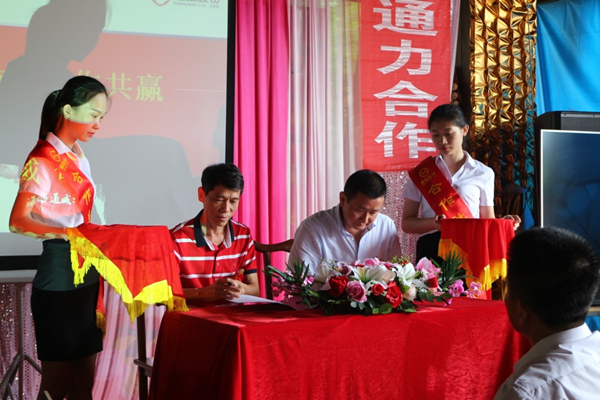 海南通威總經(jīng)理何聯(lián)軍與中國人民財產(chǎn)保險股份公司保亭分公司現(xiàn)場簽約
