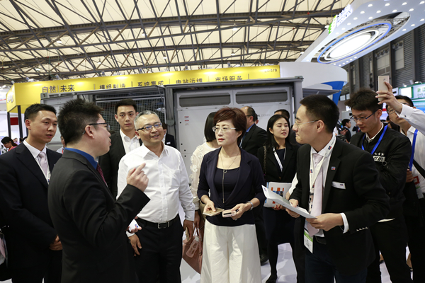 禚玉嬌總裁在SMA Solar展臺聽取逆變器產品的相關情況介紹