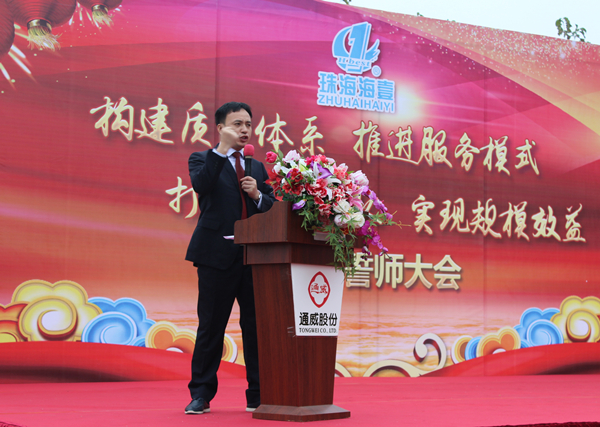 大會(huì)于8點(diǎn)整準(zhǔn)時(shí)開(kāi)始,所有通威海壹人整齊列隊(duì),進(jìn)行升旗儀式,在嘹亮的通威歌聲中,全體海壹人以飽滿的激情拉開(kāi)2017新的篇章。珠海海壹總經(jīng)理張奎在致辭中表示,2016年,珠海海壹全體員工在總經(jīng)辦的正確領(lǐng)導(dǎo)下,發(fā)揚(yáng)通威精神、銳意進(jìn)取,冷靜應(yīng)對(duì)日益激烈的行業(yè)競(jìng)爭(zhēng)和異常嚴(yán)峻的經(jīng)濟(jì)形勢(shì),眾志成城克服市場(chǎng)疲軟、養(yǎng)殖成功率低等重重困難,讓公司的經(jīng)營(yíng)管理各項(xiàng)工作得到總部的充分肯定。張總表達(dá)了公司迎戰(zhàn)2017年的決心和信心,并號(hào)召公司全體員工團(tuán)結(jié)一致,同心同德,全力以赴實(shí)現(xiàn)公司的奮斗目標(biāo)。