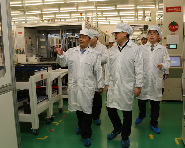 劉漢元主席陪同楊興平副省長參觀通威太陽能(成都)有限公司S1電池車間