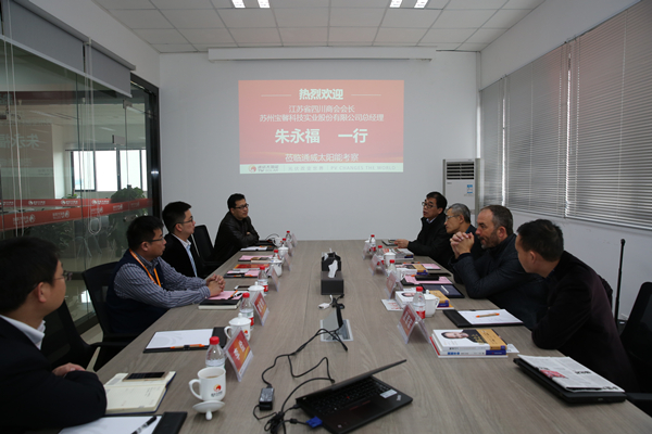座談會上,朱總對謝董事長的熱情接待表示感謝,詳細介紹了蘇州寶馨科技實業股份有限公司的濕化學設備,并希望隨著通威太陽能(成都)有限公司的二期工程建設開啟,雙方能開拓更多合作空間。
