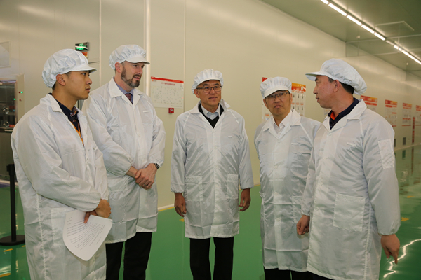 會后,Johnson Chiang先生一行來到通威太陽能(成都)有限公司S1電池生產車間參觀,詳細了解了公司的生產工藝流程、轉化率和車間產線布局等情況。參觀期間,Johnson Chiang先生一行對通威太陽能(成都)有限公司標準化的現場管理與高度自動化的車間設備給予了高度贊賞。